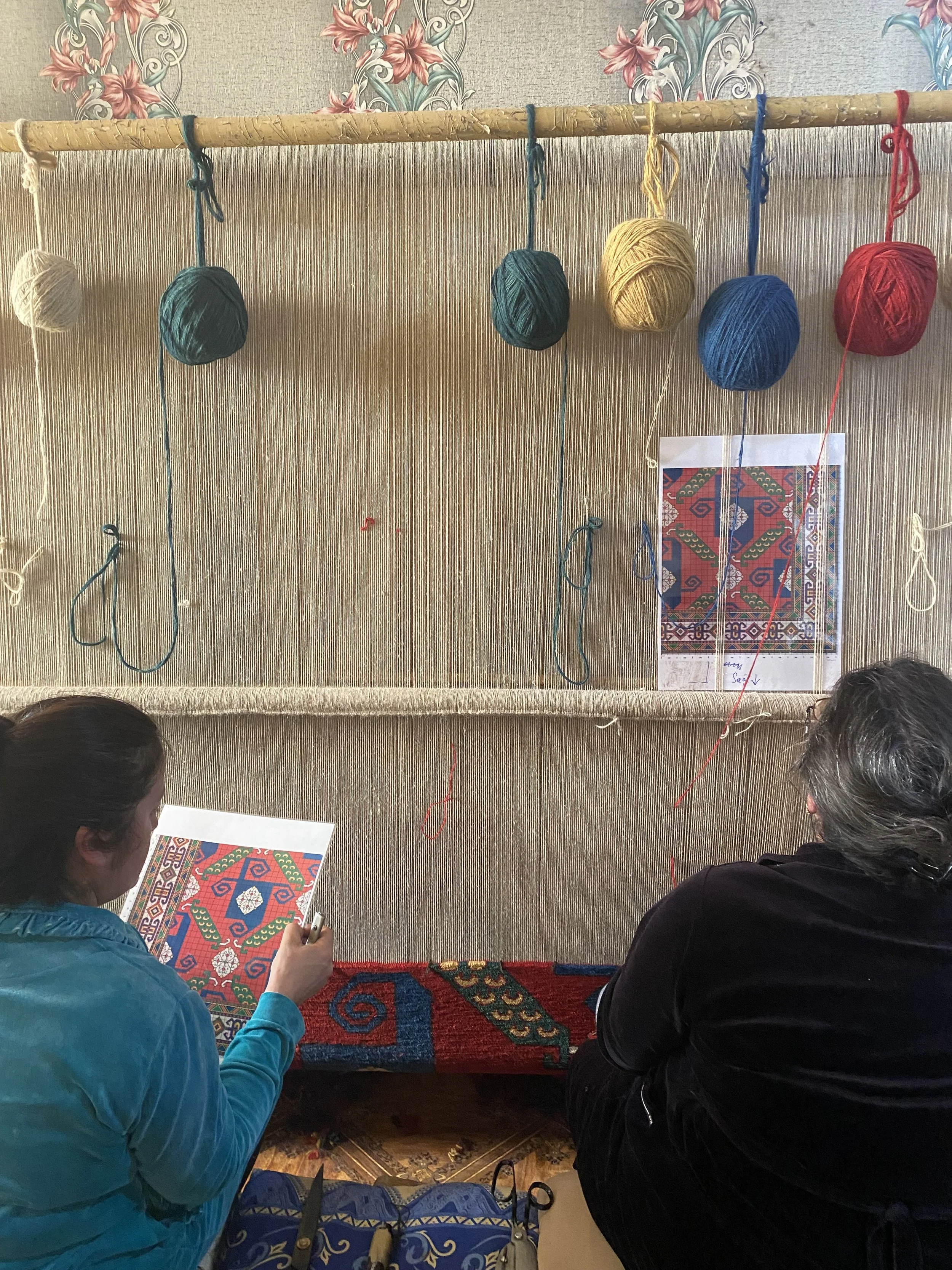 The story of weaving starts with wool. Sheep remain an important livelihood in Georgia and throughout the Caucasus. The lustrous wool of the region has a historical reputation, and antique rugs continue to fetch high prices at auction. What sets them apart? Rugs from Karachopt and Bordjalou usually have a long ‘pile’ and a looser weave, resulting in an almost shaggy silkiness which when combined with jewel-like colours and striking designs makes them almost irresistible. It is reWoven’s mission to keep the tradition of weaving alive, safeguarding the skills required to create beautiful and regionally authentic rugs. Read on to find out more about the fascinating weaving process.